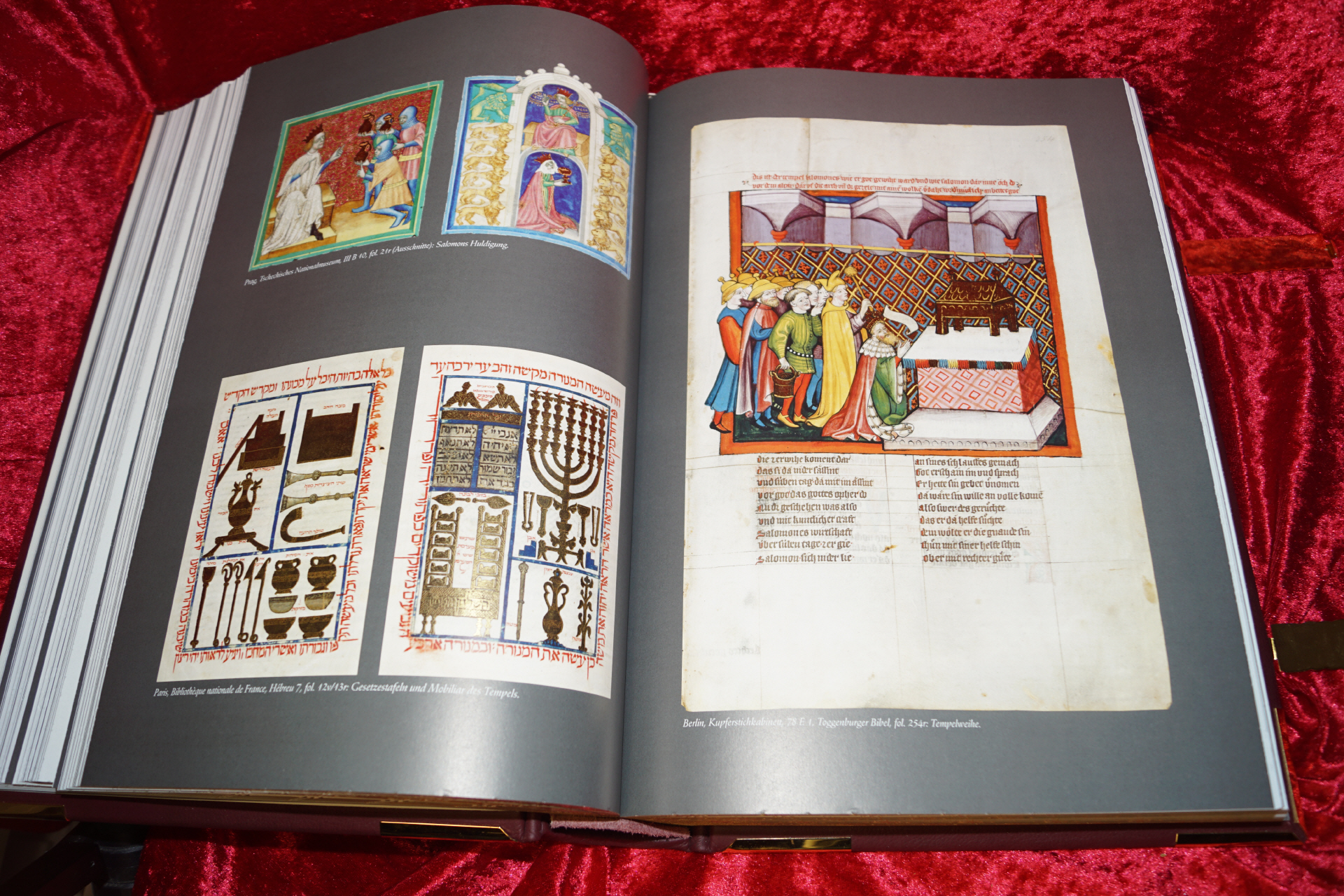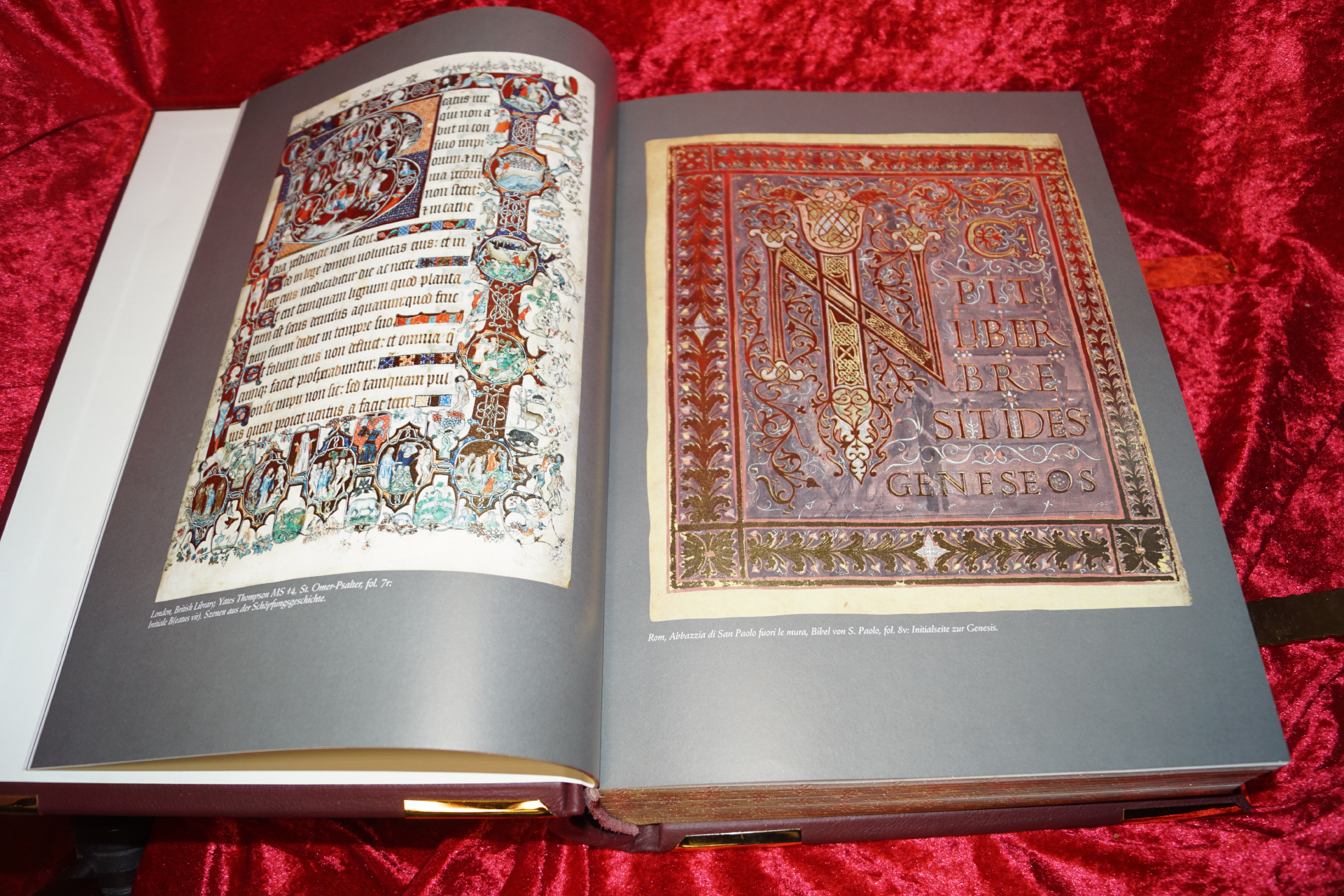 154 Original- Handschriften aus mehr als 40 Bibliotheken. Umfang. 1024 Seiten. Format: 34 x 24 cm auf feinstem Volumenpapier. Miniaturen: 356 Miniaturen aus Handschriften aus 8 Jahrhunderten in Faksimilequalität, davon 270 mit Foliengold, 571 Ornamente, insgesamt mehr als 920 Illustrationen aus 154 verschiedenen Handschriften.