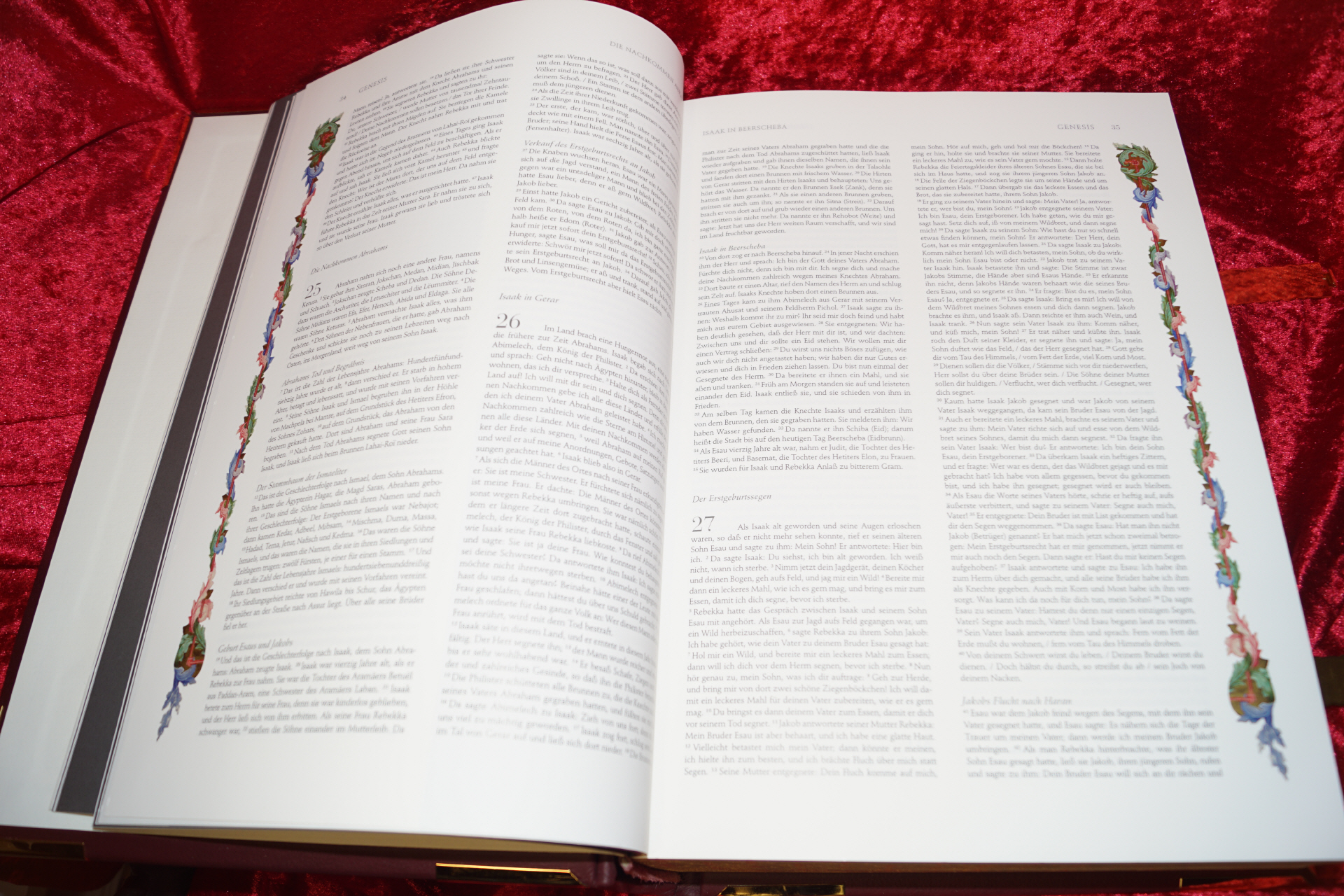 Die meisten der Bilder kommen aus Wiener und Münchener Bibliotheken. Normalerweise habe ich es nicht so mit Neuerscheinungen der Bibel, aber die hier ragt doch heraus. Das Rubinkreuz, das man auch aufhängen kann, ist ein Hingucker!