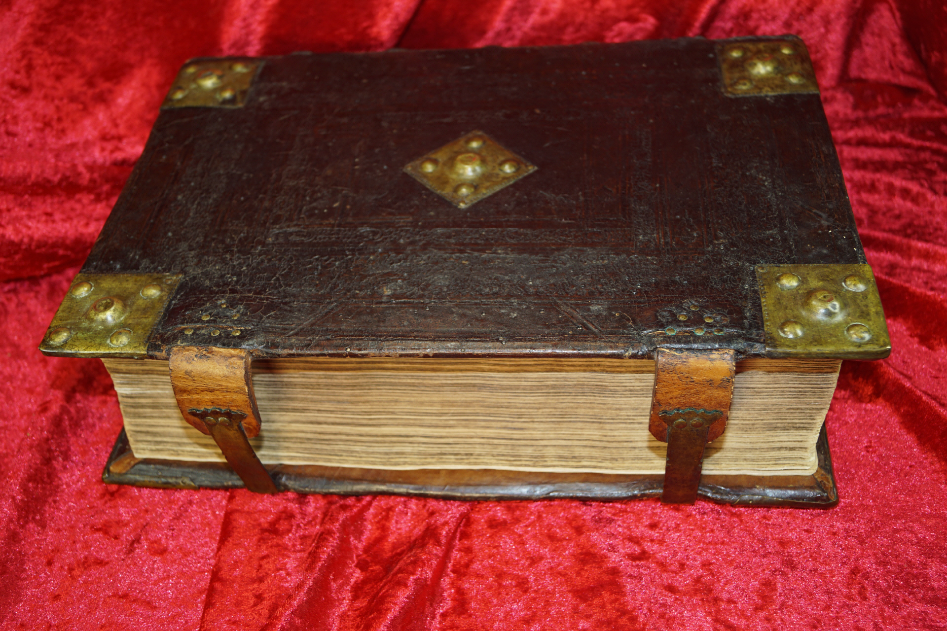 Originaleinband weitgehend beibehalten, mit den beiden Schließen. Innen kaum nachgedunkelt.