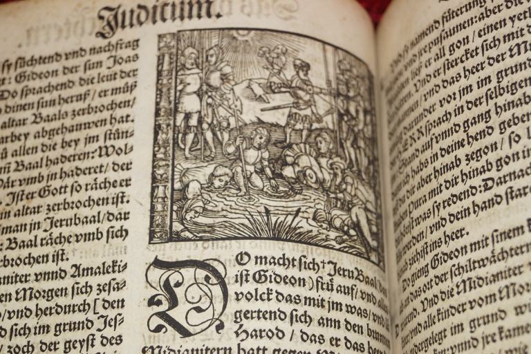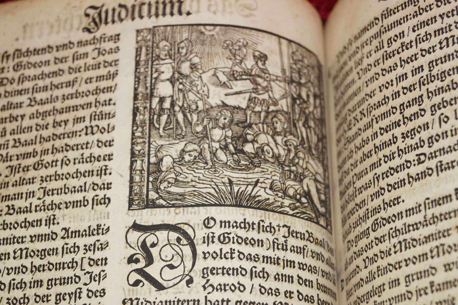 Sie erwerben die Erstausgabe der neu gestalteten Dietenberger Bibel. Sie kommt mit den 133 Holzschnitten von Virgil Solis, die dem Buch eine ganz eigene Prägung geben.