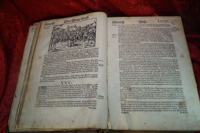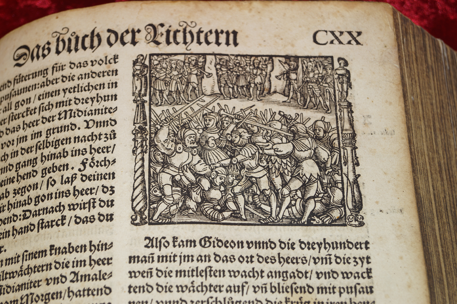 Sie erwerben die Erstausgabe der neu gestalteten Dietenberger Bibel. Sie kommt mit den 133 Holzschnitten von Virgil Solis, die dem Buch eine ganz eigene Prägung geben.