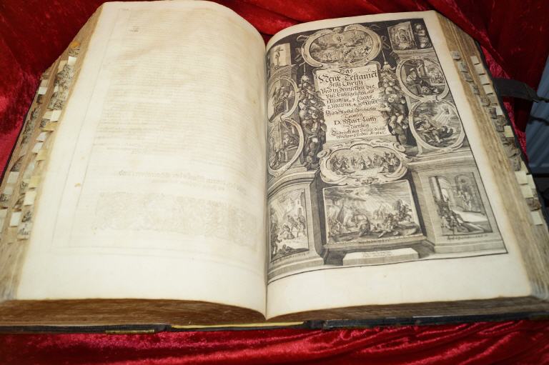 In dieser Ausgabe fehlt bis auf das Doppelbild der Augsburger Konfession nichts! Es sind alle sieben Titelblätter, die 12 ganzseitigen Porträtkupferbilder und alle Karten, vorhanden. Auch die des Heiligen Landes und des Mittelmeeres.