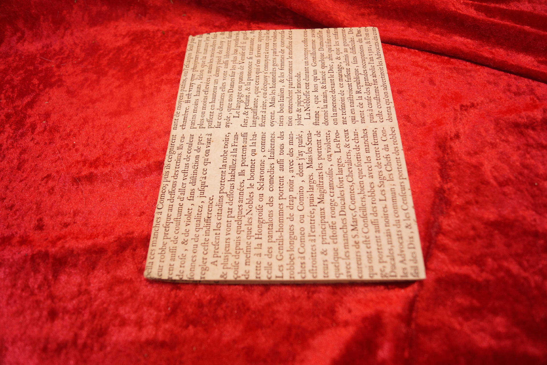 Der Einband unten aufgeplatzt, mit Fehlstelle auf der Unterseite.